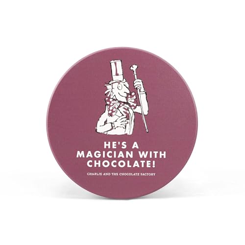 Halvmåne buktmagiker med choklad – Charlie och chokladfabriken – rödbrun/vit 10 cm stengods dryck underlägg