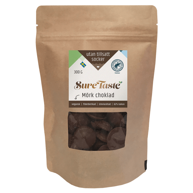Sure Taste Chocolate pellets (300gr), Chokladpellets choklad - utan tillsatt socker. (Mörk Choklad)