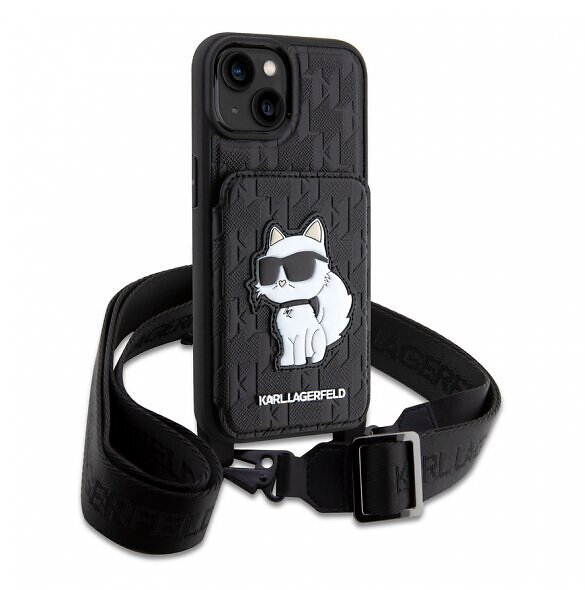 Karl Lagerfeld iPhone 15 Plus Skal Saffiano & Choupette Crossbody Svart