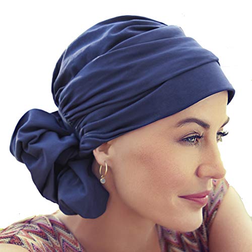 Christine Huvudbonader Shakti Turban | Chemo Huvudbonad | Huvudduk för Dam Med Håravfall | Kemohatt på 95% Viskos Bambu 5% Elastan, Blå, One Size