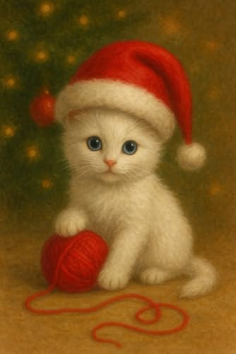 Cozy Christmas with Cute White Kitten with Ball of Yarn: Beautiful Gift Notebook Journal for Friends and Family, Teens and Adults, School Booklet
