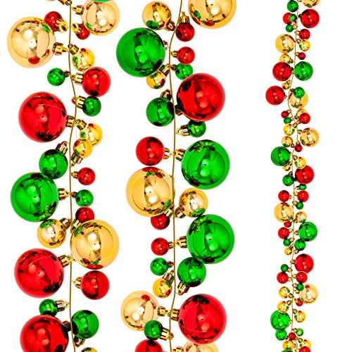 Whaline Christmas Ball Garland Ball Ornament 6ft Bauble Garland Christmas Tree Ball Decoration Shatterproof Ball Ornaments for Xmas Party Supplies, Indoor Outdoor Home Office, Red Green Gold