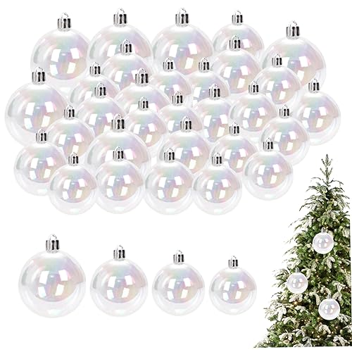 Iriserande Baubles Christmas Clear Baubles 3/4/5/6cm Shatterproof Iridescent Ornament Balls 30pcs Plastisk glänsande hängande vita julbollar för semesterfestträddekorationer