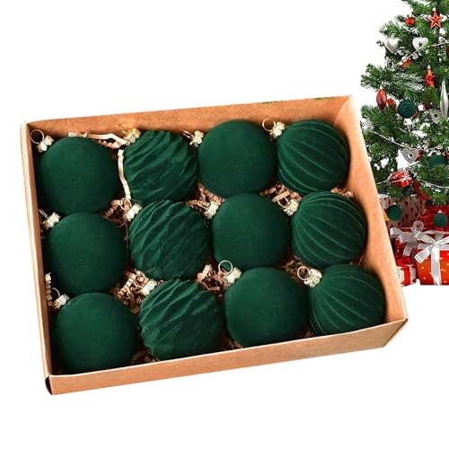 Flocked Ornaments, 12 Pieces Breakable Decor For Holiday, 2.3 Inch Velvet Christmas Tree Balls Decorations, Celebration Modern Home Family Yard Entryway Porch Living Room Outdoor