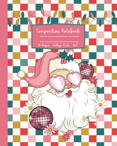 Santa Composition Notebook: Retro Groovy Christmas College Rule Lined Journal With Disco Balls; 8x10"