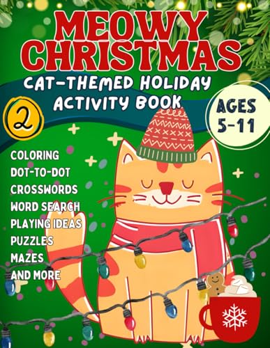 MEOWY CHRISTMAS Cat-Themed Holiday Activity Book for Kids Part 2 Ages 5-11: Coloring, Mazes, Crosswords, Dot to Dot, Family Game Ideas, Puzzles, Word Search, and More