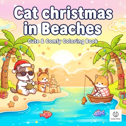 Cute Cat Christmas in Beaches Coloring Book: Tropical Holiday Fun and Relaxing Art for All Ages