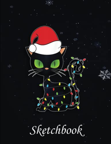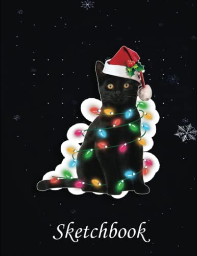 Christmas Sketch Book: Black Cat christmas light t funny cat lover christmas, 120 Pages Help You Design Your Ideas Size 8.5 x 11 Inches