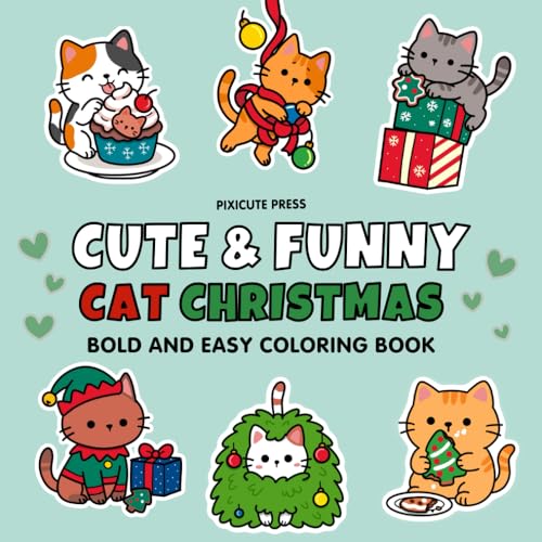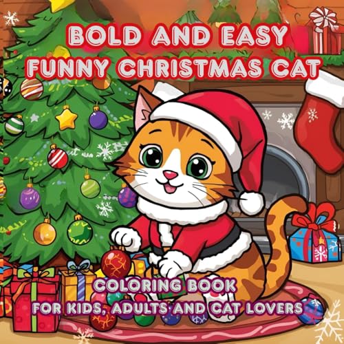 Bold and Easy Funny Christmas Cat Coloring Book for Kids, Adults and Cat Lovers