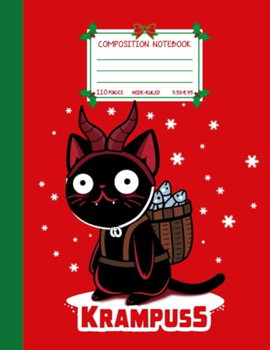 Christmas Composition Notebook, Cute Kawaii Christmas Krampus Cat Cartoon, Wide Ruled 7.5 x 9.75 Inches, 110 pages Festive Writing Journal for Holiday Notes, School, or Gifts