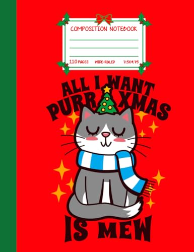 Christmas Composition Notebook, Cute Kawaii Christmas Tree Cat Meme, Wide Ruled 7.5 x 9.75 Inches, 110 pages Festive Writing Journal for Holiday Notes, School, or Gifts