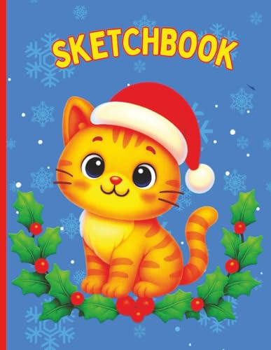 Christmas Cat Blank Sketchbook: Adorable Holiday Drawing Notebook – Perfect Christmas Gift for Creative Girls, Kids, and Teen Cat Lovers