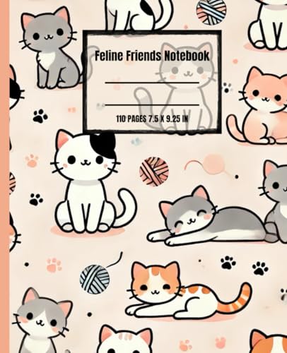 Feline Friends Notebook: A Cute Cat Themed Journal for Girls, Women, and Kawaii Kitty Lovers: 110 Lined Pages for School, Daily Journaling, or as a ... or Christmas Gift for Cat Moms & Kids