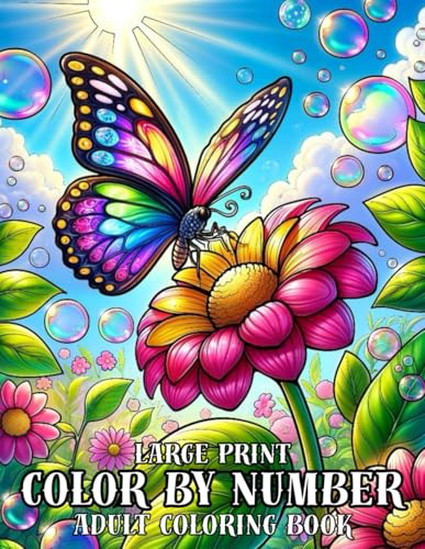 Large Print Color By Number Adult Coloring Book: 100 Page Color By Number Large Print Coloring Book For Adult. Easy 50 Desain with Autumn, Christmas, Halloween Cat, Thanksgiving And More