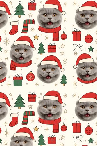 Christmas Cat Notebook – Festive Holiday Journal for Cat Lovers: Cute grey cat in Santa hat pattern • 200-page 6x9 inch blank notebook for Christmas sketching, winter notes, or gift giving
