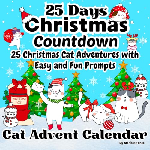 25 Days Christmas Countdown: Cat Lover's Advent Calendar with Simple, Big & Easy Drawing Challenges / A Festive Activity Book with Prompts/ Kitty Cute Xmas Doodles for Kids.