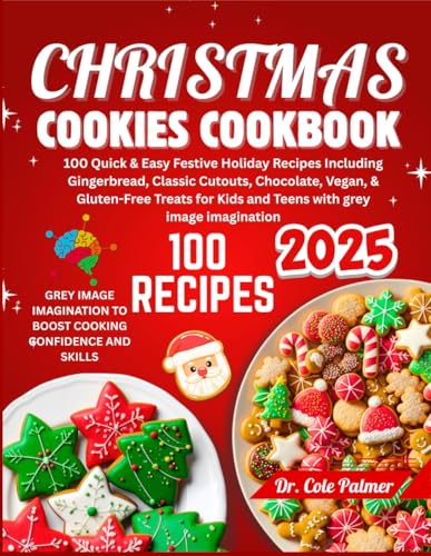 CHRISTMAS COOKIES COOKBOOK 2025: 100 Quick & Easy Festive Holiday Recipes Including Gingerbread, Classic Cutouts, Chocolate, Vegan, & Gluten-Free Treats for Kids and Teens with grey image imagination