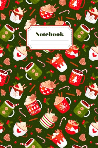 Christmas Red and Green Notebook: Winter vibes with hot chocolate candy cane 6x9 lined journal