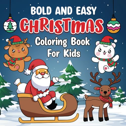 Bold and Easy Christmas Coloring Book for Kids.: 50+ Cute, fun and easy Christmas coloring pages with Santa, Snowmen, Gifts and much more!