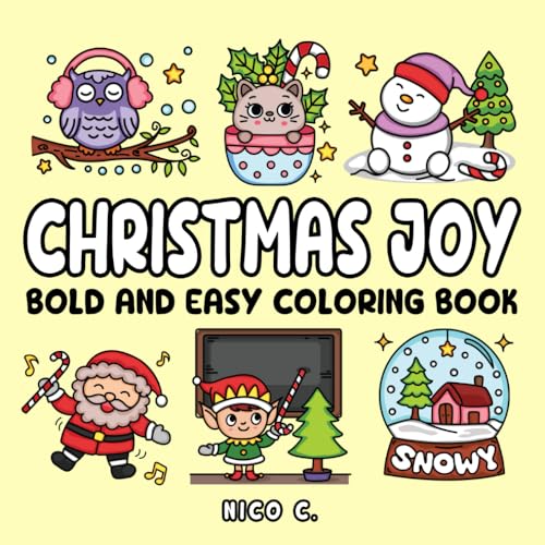 Christmas Joy Bold & Easy Coloring Book: 50 Fun and Heartwarming Christmas Coloring Pages with Bold Lines, Simple Designs, and Positive Words for Kids and Adults