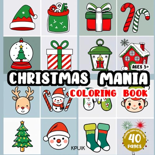 Christmas Mania: Fun & Festive Christmas Coloring Pages for Kids Ages 5+: 160 Jolly Objects to Color