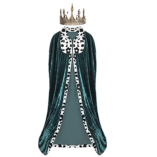 Proumhang Prince Cloak Set King Cape With Golden Crown Adult Halloween Carnival Christmas Medieval Costume Grön 170CM
