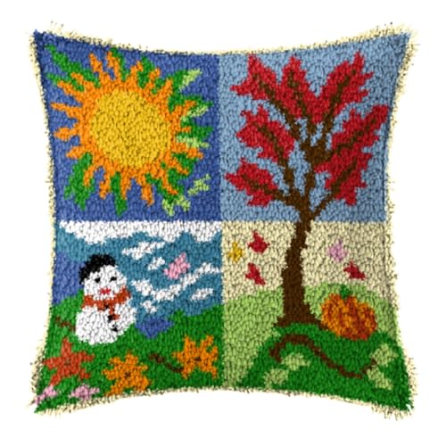 YOOTOM Snäpp på krok-kit för vuxna, gör-det-själv tomte och krok kuddfodral, kit för korsstygn, kit för kuddetillverkning, Christmas Latch Hook Pillowcase Kits 43 x 43 cm