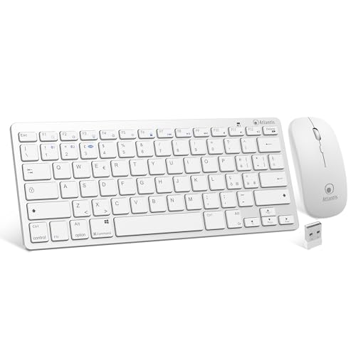 Atlantis Argo 900Pro Combo KIT Mini Ultraslim + mus - trådlöst RF + Bluetooth, QWERTY 78 tangenter choklad nyckel, för PC/Notebook/Smartphone/surfplatta/iOS/Android, vit