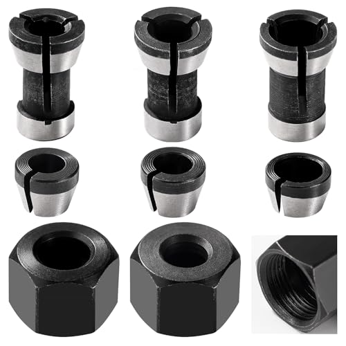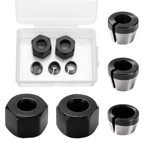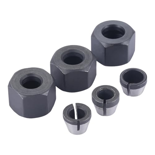 VooGenzek 6 ST 6mm / 6.35mm / 8mm Fräshylsa Chuck, Överfräshylsa Chuck, Trimmer Spännhylsa Adapter med 2 ST Mutter, för Träbearbetning Trimning Gravyrmaskin