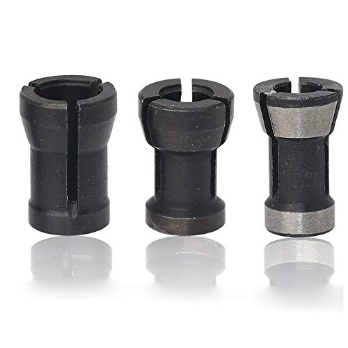 VooGenzek 3 Stuks Router Collet Adapter, 6mm 6.35mm 8mm Hylsa, Fräser Chuck Med 2 Skruvmutter, För Houtbewerking Trimmen Graveermachine