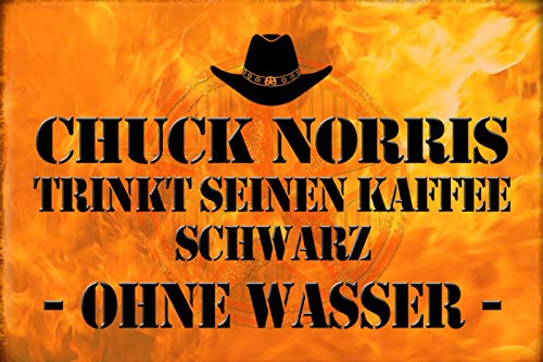 Schatzmix Ordspråk: Chuck Norris dricker kaffe metallskylt dekor 20 x 30 tin skylt plåtskylt, plåt flerfärgad, 20 x 30 cm