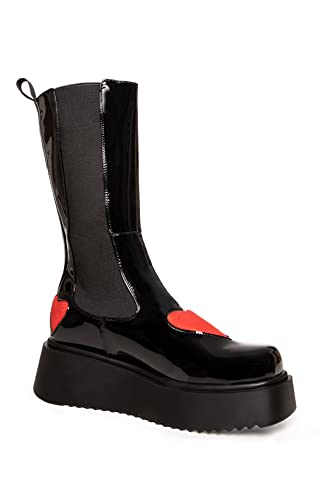 LAMODA - Stone Cold Lover Chunky Calf Boots, EU 36, Svart patent rött hjärta, 36 EU
