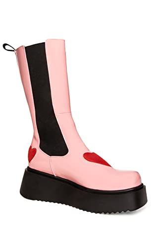 LAMODA - Stone Cold Lover Chunky Calf Boots, EU 41, Rosa patent rött hjärta, 41 EU