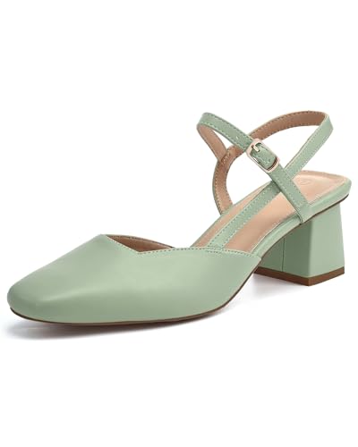 Rilista Women's Slingback Chunky Low Heels Closed Toe Heel Wedding Party Dress Pumps Shoes Green