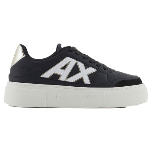 Armani Exchange dam Wonder, Chunky sula, gulddetaljer sneakers, Op. Vit + svart, 36,5 EU, Op White Black, 36.5 EU