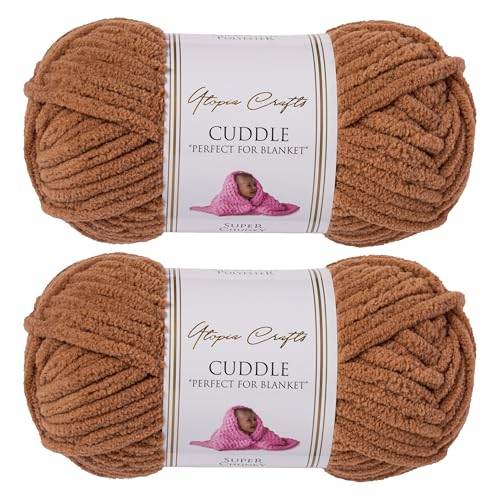 Utopia Crafts Cuddle Super Chunky Chenille Soft Yarn for Knitting and Crochet 2x 100g (Brown)