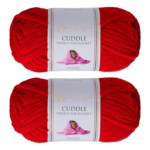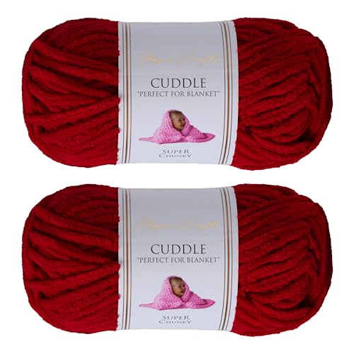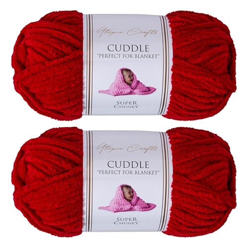 Utopia Crafts Cuddle Super Chunky Chenille Soft Yarn for Knitting and Crochet 2x 100g (Red)