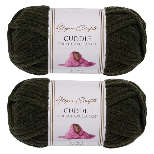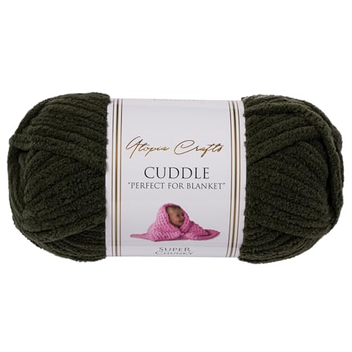 Utopia Crafts Cuddle Super Chunky Chenille Soft Yarn for Knitting and Crochet 2x 100g (Olive Green)