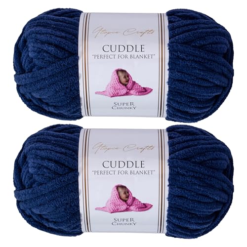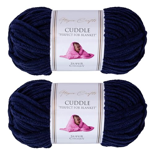 Utopia Crafts Cuddle Super Chunky Chenille Soft Yarn for Knitting and Crochet 2x 100g (Navy Blue)