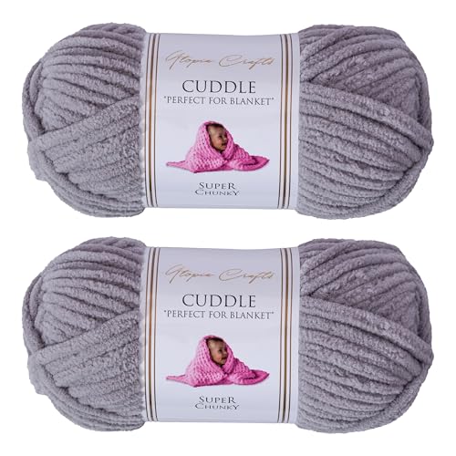 Utopia Crafts Cuddle Super Chunky Chenille Soft Yarn for Knitting and Crochet 2x 100g (Soft Grey)