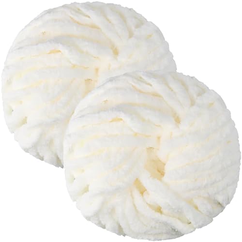 Tjockt ullstickgarn 2 x 250 g, supermjuk chenille Chunky Yarn för virkning, stickning, filt, kudde, amigurumi – vit