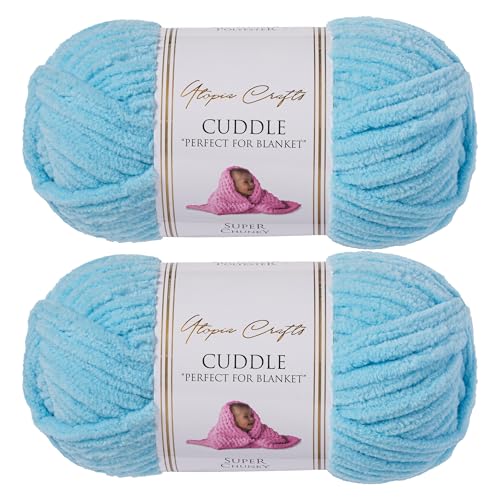 Utopia Crafts Cuddle Super Chunky Chenille Soft Yarn for Knitting and Crochet 2x 100g (Sky)