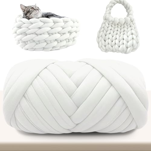 GOEDCH 500 g Bulky armstickning: Tjock ull skrymmande handstickningsgarn, virkad ull Chunky Yarn, Roving garn för handstickning virkning för filtar, husdjursbon, gör-det-själv hantverk (vit)