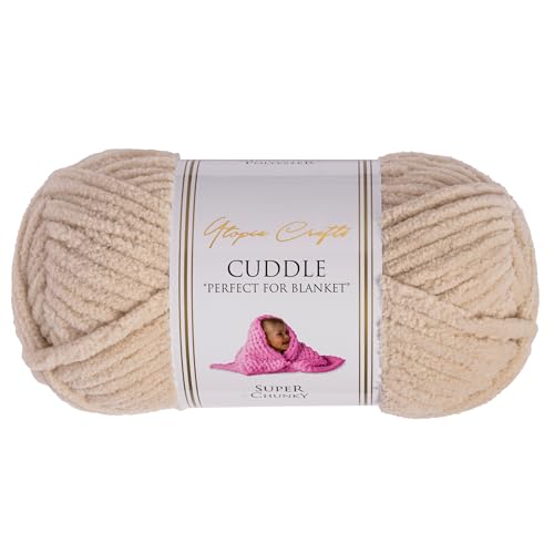Utopia Crafts Cuddle Super Chunky Chenille Soft Yarn for Knitting and Crochet 2x 100g (Cream)