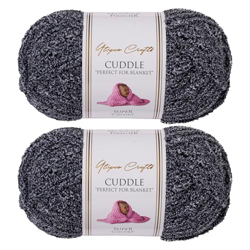 Utopia Crafts Cuddle Super Chunky Chenille Soft Yarn for Knitting and Crochet 2x 100g (Stormy Charcoal)