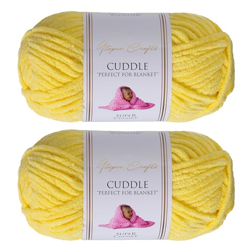 Utopia Crafts Cuddle Super Chunky Chenille Soft Yarn for Knitting and Crochet 2x 100g (Lemon)