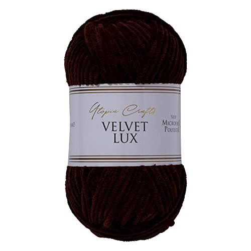 Utopia Crafts Velvet Lux Chenille Super Soft Chunky Yarn for Knitting and Crochet, 100g - 110m (Dark Brown)