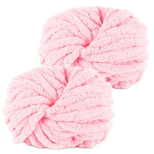YushengTai tjock ull, 2 stycken 500 g ljusrosa tjockt ullgarn stickgarn, supermjuk chenille chunky yarn, ull super bulky kan användas för stickning av kuddar, filtar, halsdukar och mössor