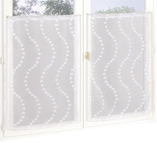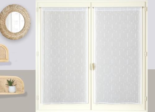 Atout Ciel Broderad voilegardin med stångpass, klar att installera, 2 x 60 x 120 cm, vit