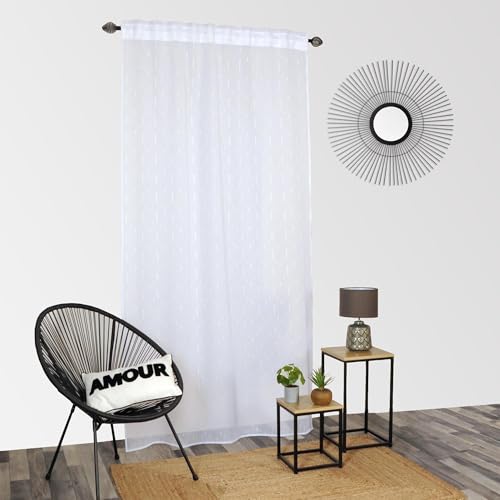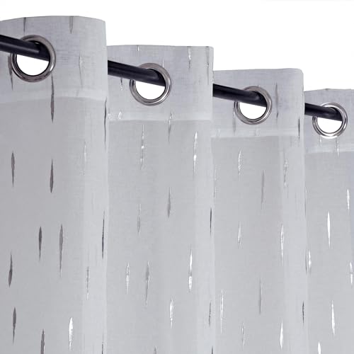 Atout Ciel Silvertryckt slöja gardin med öljetter 140 x 240 cm redo att installera, vit